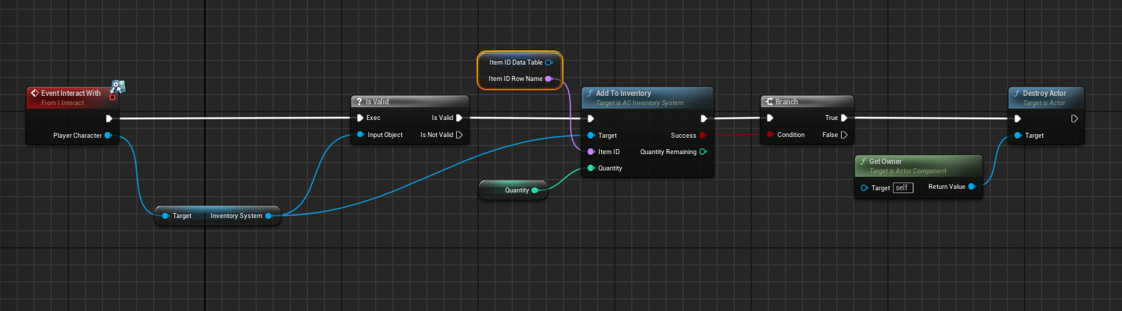 The “AC_Inventory Component” has many more functions that take care of placing the object in the Inventory Slot etc., but there’s no need to showcase them here as they are shown in the gameplay video.